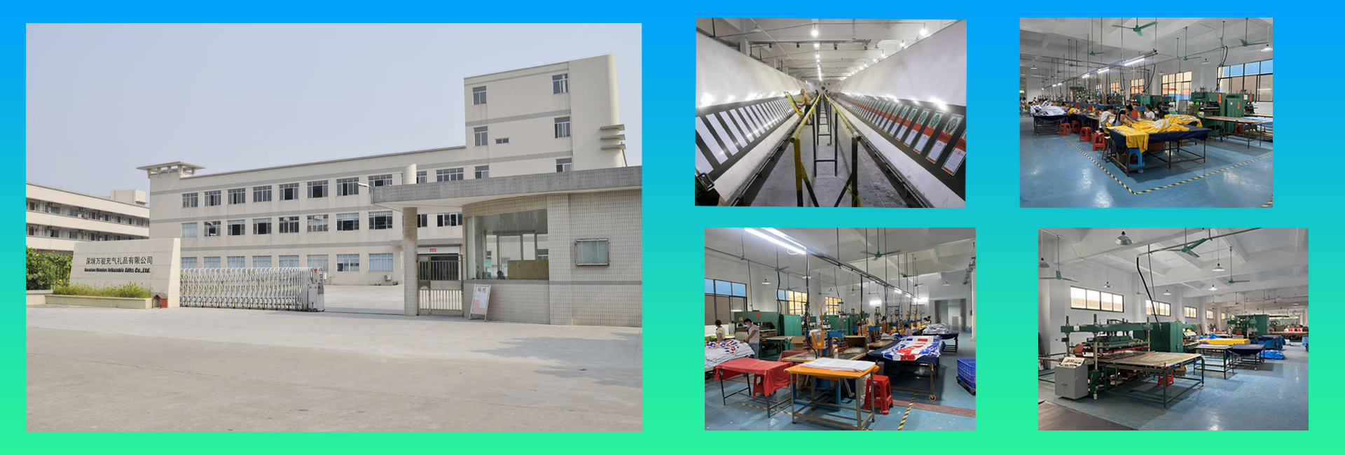 At present,the main material are TPU,EVA,PVC,nylon,Oxford cloth and pvc tarpaulin;the production process adopts high frequency welding,(needle)sewing,(high temperature)hot sealing,etc.The main products are PVC inflatable toys,advertising inflatables,customized inflatable,pvc inflatable balloon,inflatable furniture etc.Products have been in North America,Europe,Japan and the Middle East,South Africa,Southeast Asia and other places with mature markets and stable customer groups.